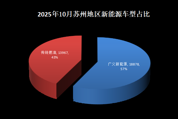 2025年10月,傳統燃油汽車銷量13967輛,廣義新能源汽車銷量18878輛,廣義新能源汽車市占率57%。