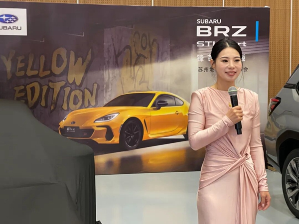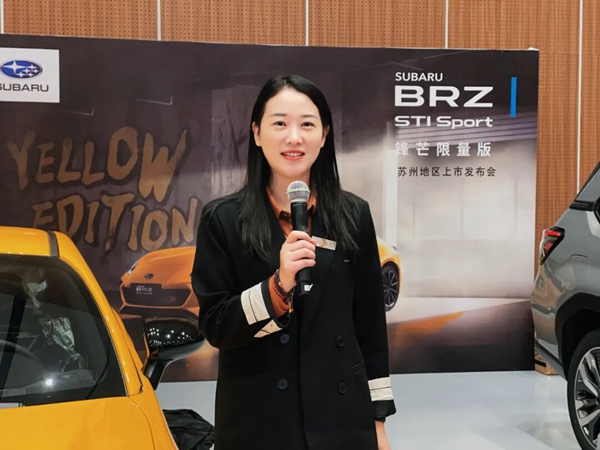 蘇州明安斯巴魯專營店總經理韓瑞娟女士上臺致辭。韓總深入闡述了斯巴魯品牌一直以來對汽車性能和駕駛樂趣的執(zhí)著追求,強調了BRZ車系作為品牌運動精神代表的重要意義。同時,也對蘇州地區(qū)的市場前景表達了充分的信心,感謝了長期以來支持斯巴魯品牌的客戶和合作伙伴。領導還提到,斯巴魯BRZ競速黃車型的推出,不僅是為了滿足消費者對個性化和高性能汽車的需求,更是對品牌運動基因的一次深度詮釋和傳承。