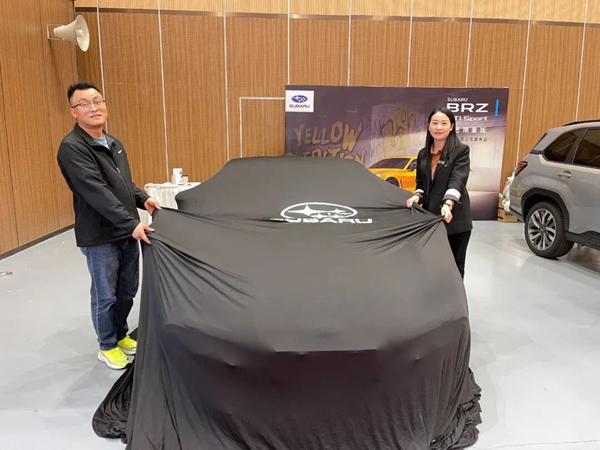 在眾人的翹首以盼中,激動人心的揭幕環(huán)節(jié)終于到來。隨著舞臺上的幕布緩緩拉開,一輛閃耀著奪目競速黃光芒的斯巴魯BRZ展現(xiàn)在大家眼前。其流暢而動感的車身線條、獨特的黑化套件以及標志性的C字形LED日行燈帶,瞬間吸引了全場的目光,現(xiàn)場爆發(fā)出陣陣驚嘆和熱烈的掌聲。