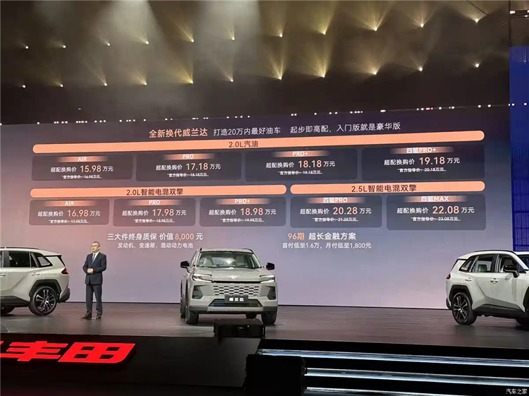 11月20日,廣汽豐田全新威蘭達正式上市,新車共計推出9款車型,售價16.98-23.08萬元;超配換購價15.98-22.08萬元。全新豐田威蘭達是廣汽豐田智能化轉型的首款燃油車型,該車型將會搭載豐田中國自研座艙和新一代TSS 4智駕(輔助)系統,擁有2.0燃油、2.0混動、2.5混動多種動力可選,新車將在2025廣州車展正式開啟公眾亮相。